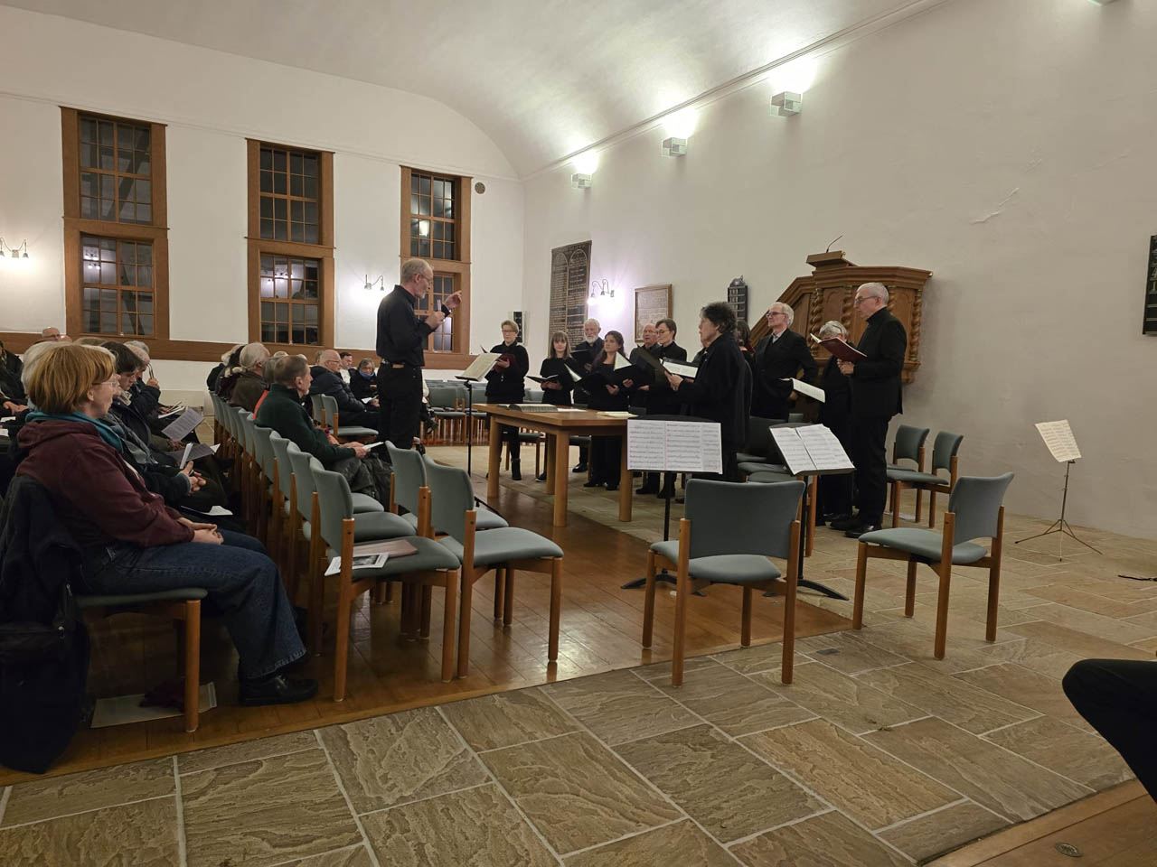 Geistliche Gesänge erfreuten die Besucher am 18. November 2025 bei einem Chorkonzert, dargeboten vom „Medek-Chor“ unter Leitung von Michael Voigt.