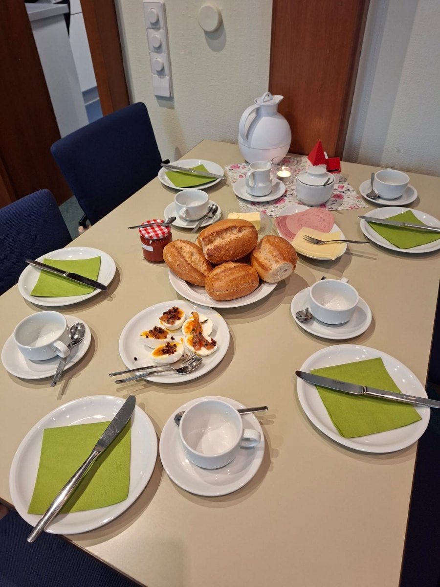 Im Anschluss an den Gottesdienst waren alle zu einem gemeinsamen Frühstück ins Gemeindehaus eingeladen.